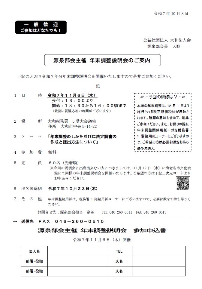 場 所:大和税務署 5階大会議室(住所 大和市中央5-14-22)