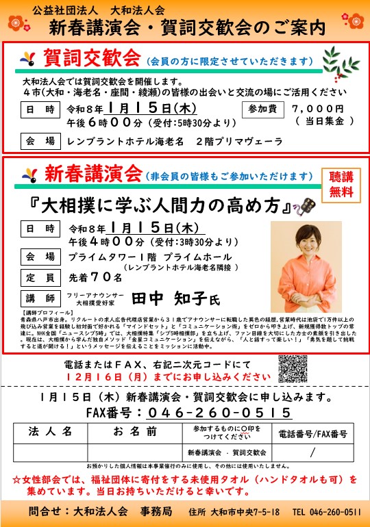 申込先:大和法人会事務局 TEL:046-260-0511 FAX:046-260-0515
